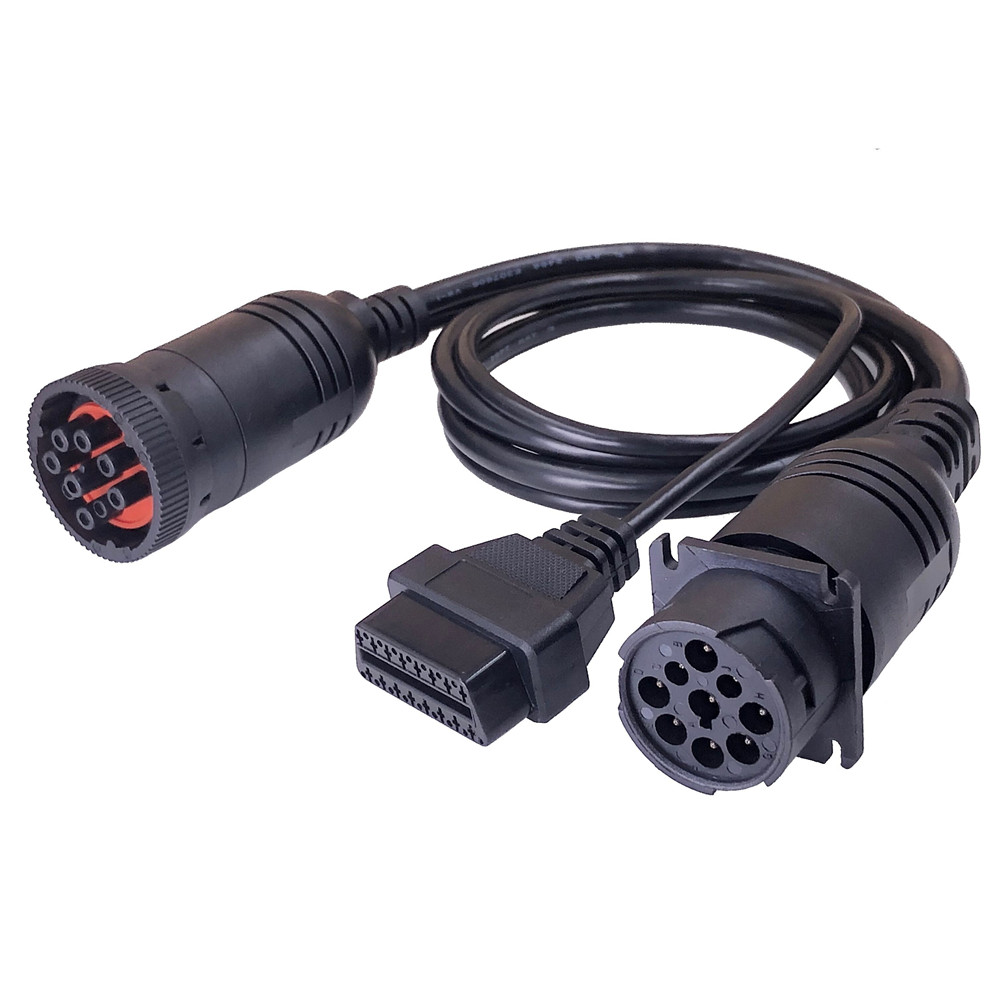 PRODUCTS > Heavy Vehicle Diagnostic Cable > Long J1939 9P Deutsch Male to Female with OBD2 Cable