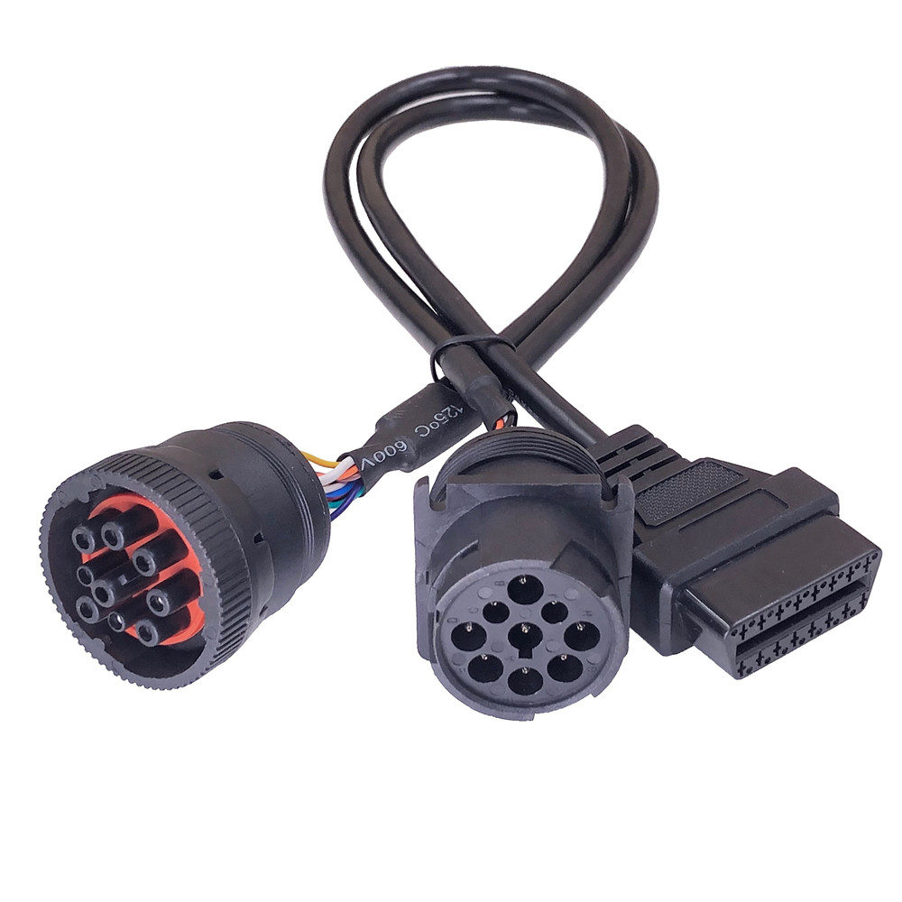 PRODUCTS > Heavy Vehicle Diagnostic Cable > Black J1939 9P Male to Female + OBD2 Female Cable